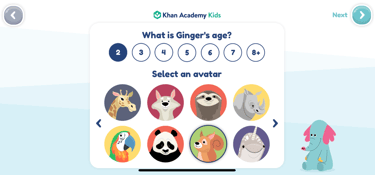 2. Customised Information: go back to the App, Khan Kids, and enter your children's names (nicknames) and ages, then select animal avatars for them.