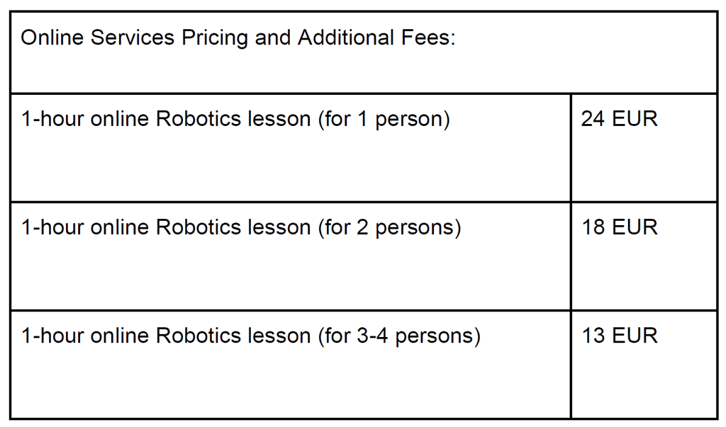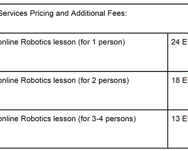 For the purpose of advertising, all prices of our services are clearly described and stated in our social media and advertising means and material. For the purpose of an Agreement, all prices of our services are clearly described and stated in our Invoice sent to the Client for agreeing and signing. All additional fees have been clearly described in Clause 3 and Clause 6. There are no other hidden fees or extra charges in any possible way apart from what is described here and in our means of advertising and clearly stated in the service description. Additional expenses may apply for necessary equipment and/ or materials to attend the Company's online learning courses and they are subject to the Client’s personal preference and responsibility to purchase and use. These expenses are not an extra charge of the Company but required material that the Company requests the Client to have prior to the provision of the services.